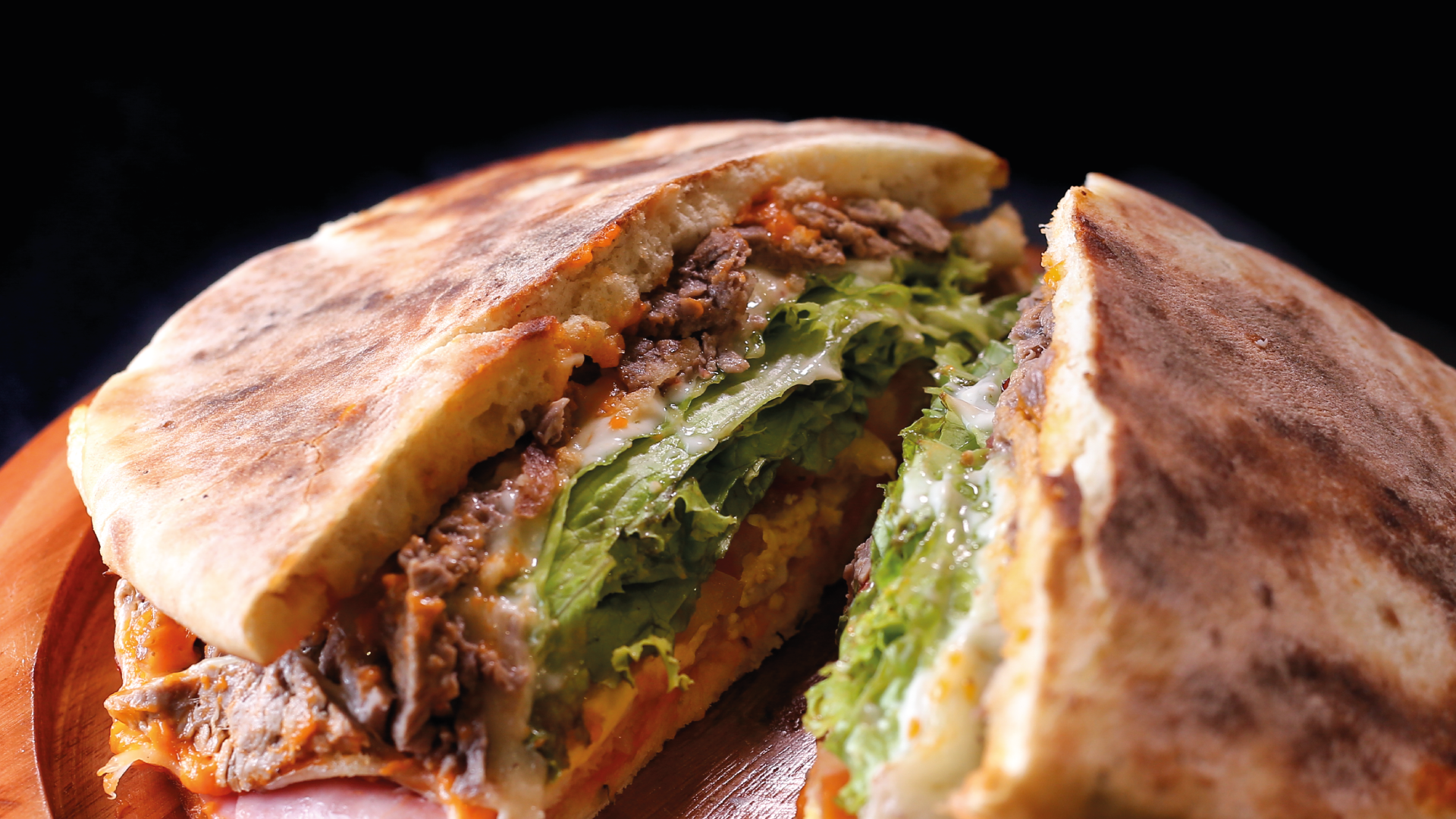 Todos os beirutes acompanham cheddar, mussarela, presunto, ovos, bacon, tomate e alface. Exemplos de beirutes: