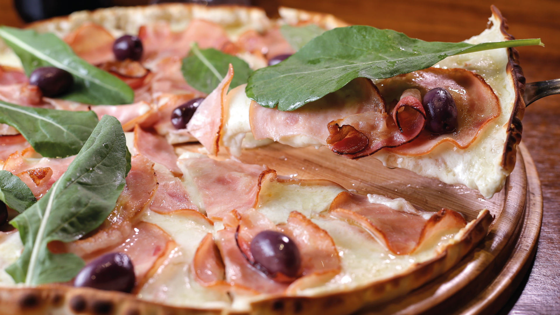 Lombo canadense, champignon, cebola, mussarela, palmito e bacon. - 09 – Bacon