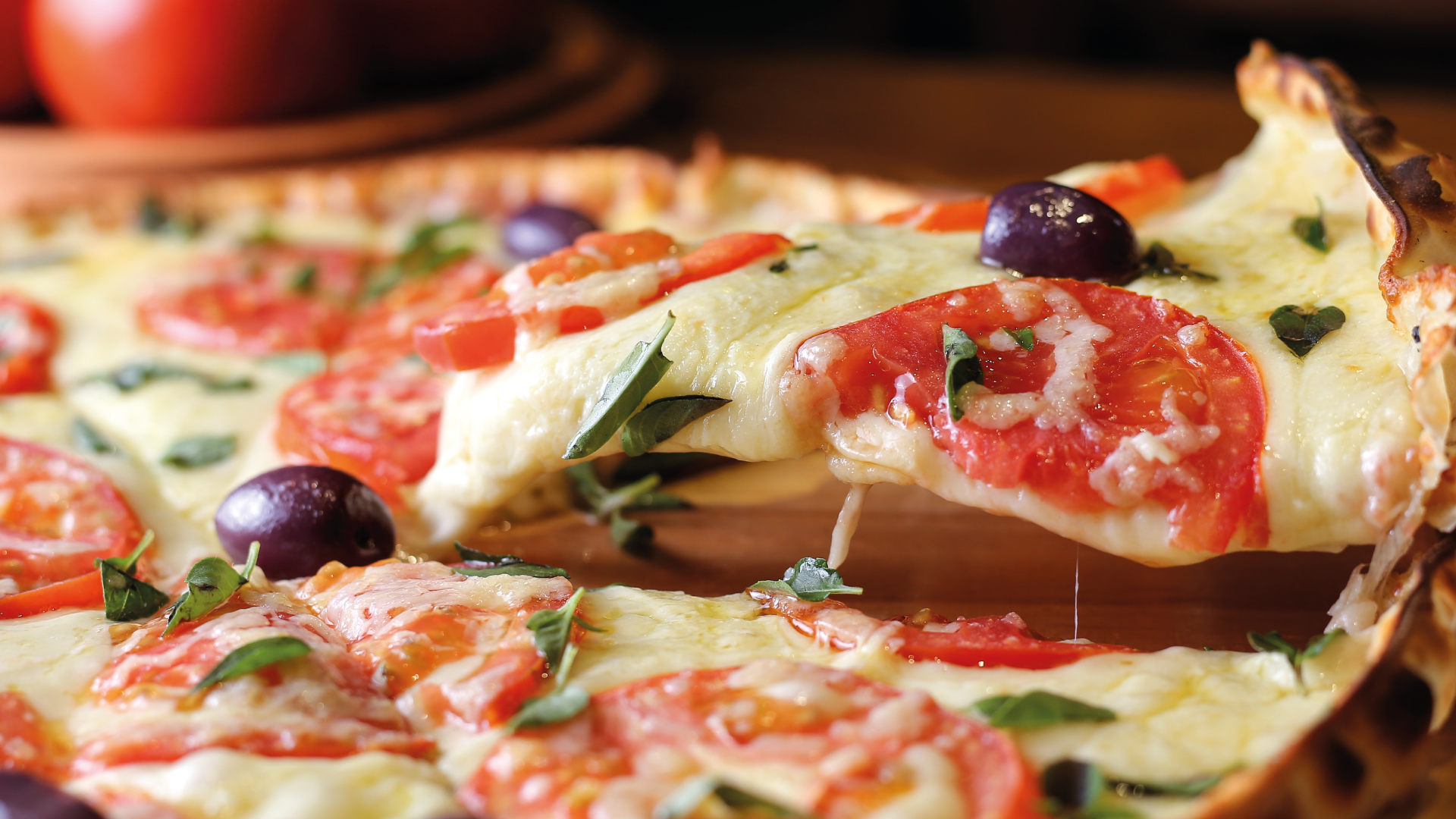 Presunto, cebola, mussarela, tomate e bacon. - 18 – Dois Queijos